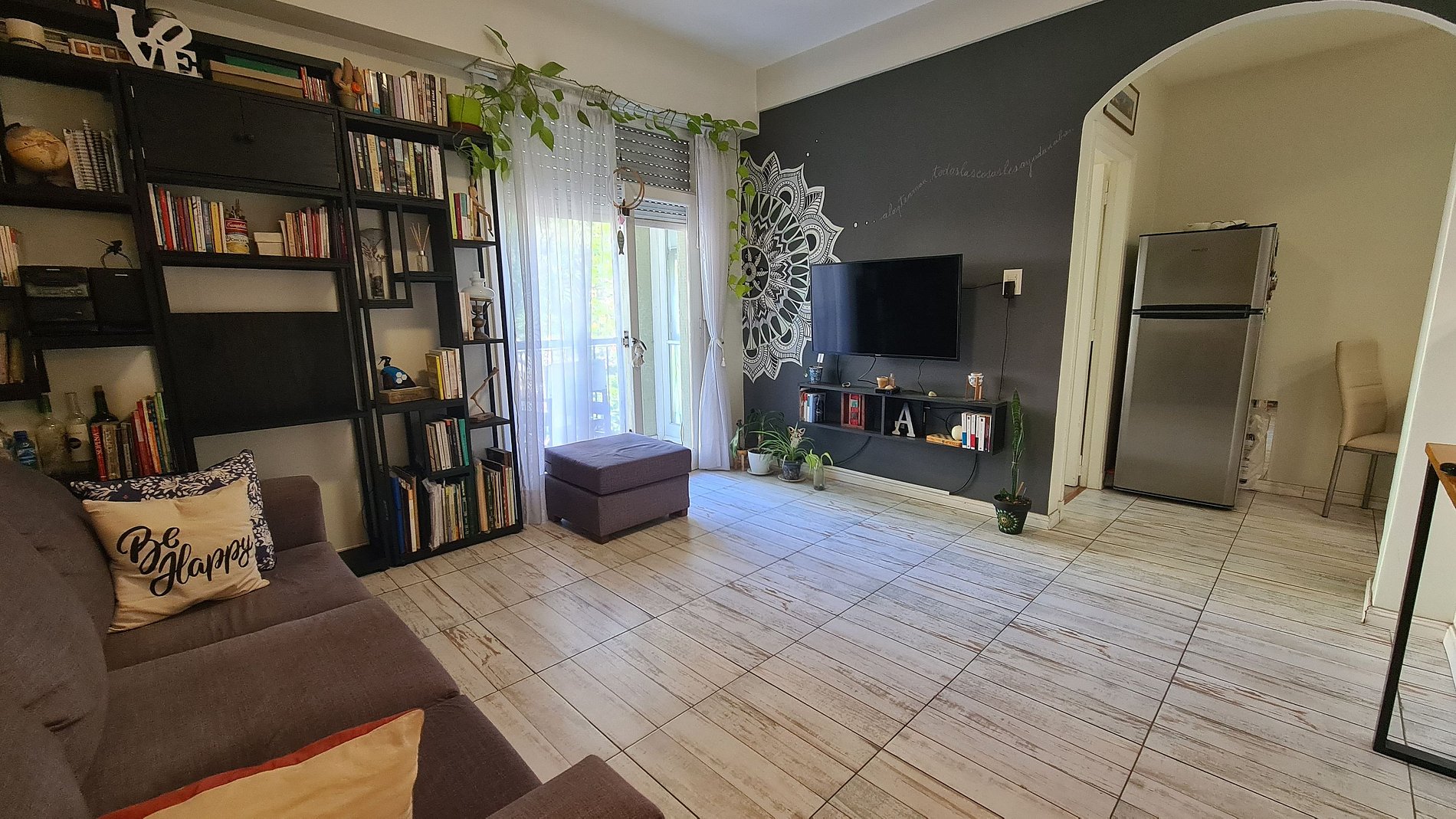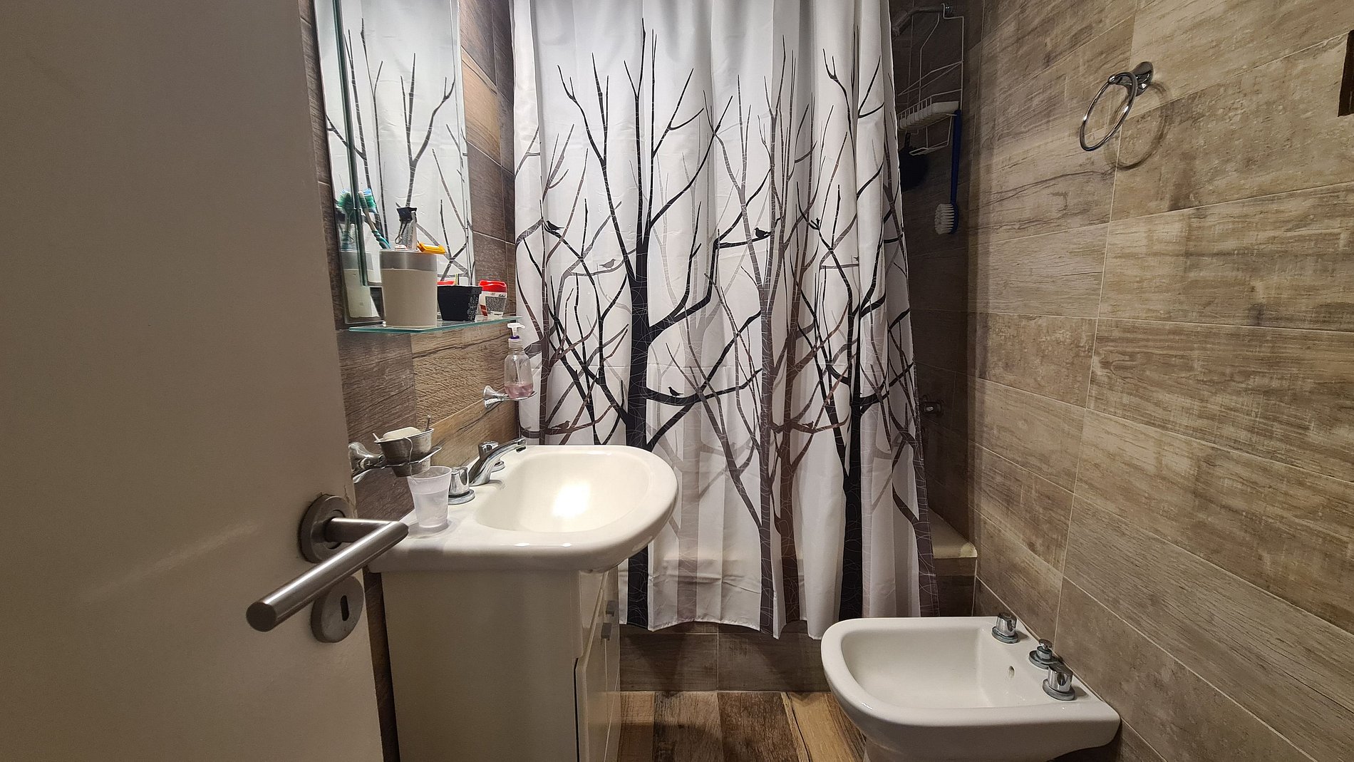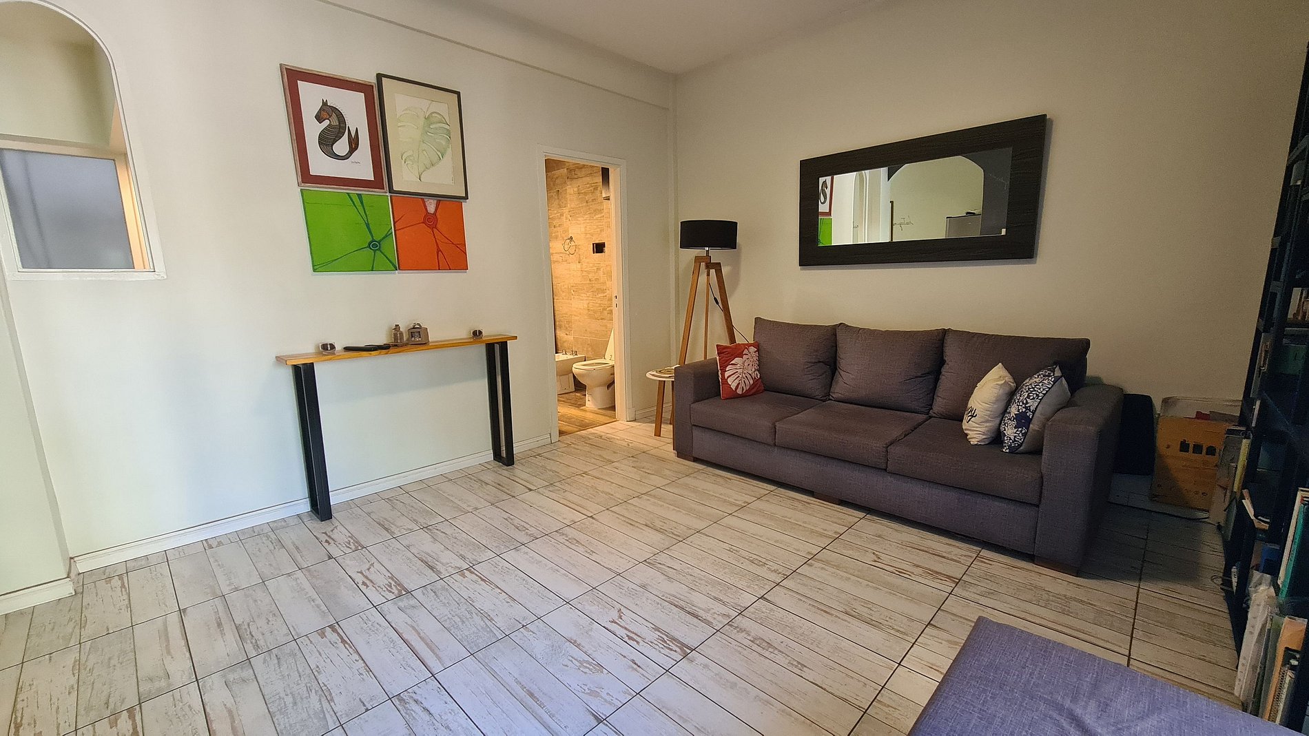 El ingreso es a la cocina integrada con barra desayunadora, continuando al living comedor con salida al balcon, el dormitorio cuenta con una cama matrimonial y placard empotrado, el baño es completo con bañera