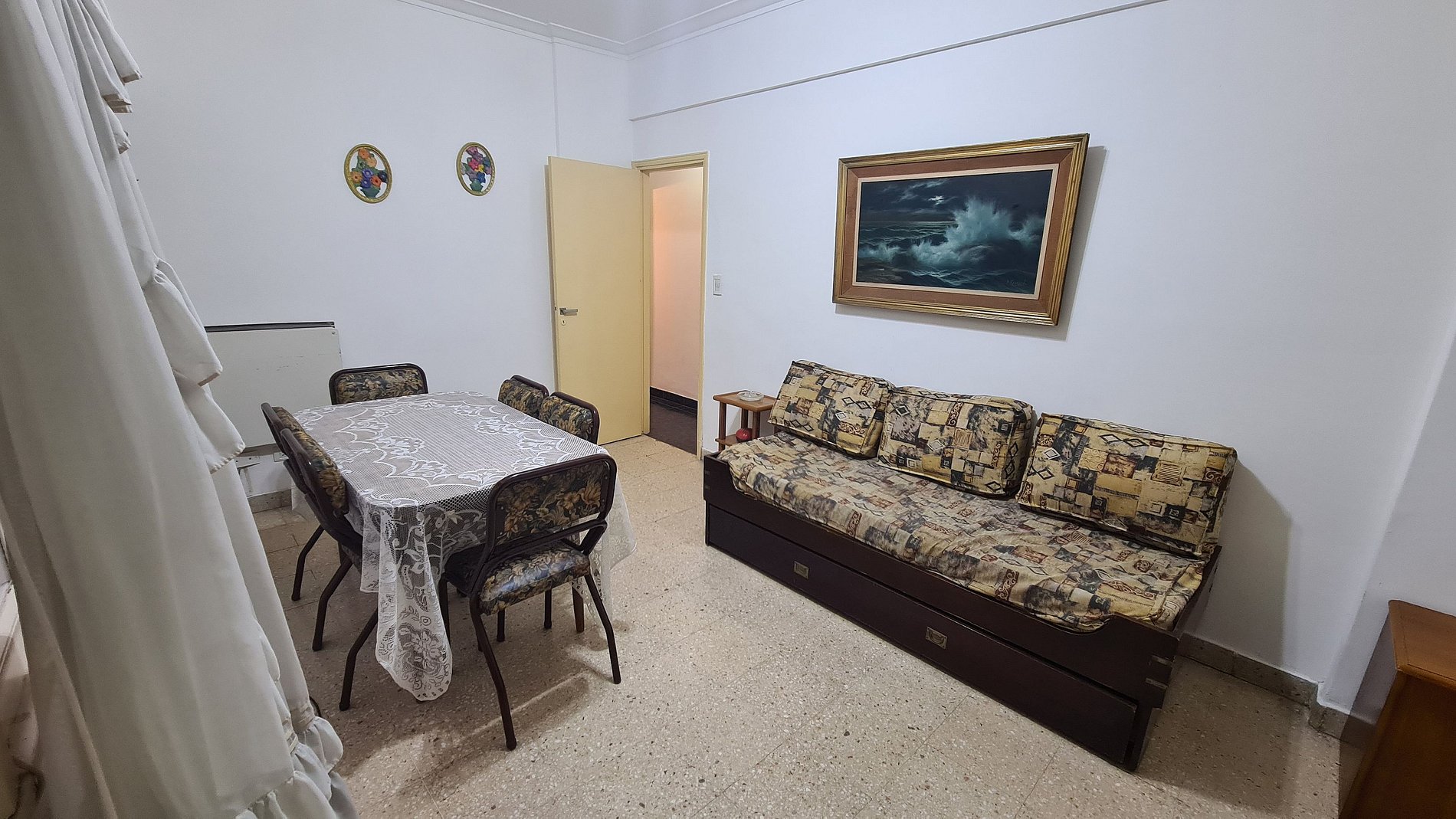 El ingreso es al living comedor que cuenta con un sofa cama con una cama nido, el dormitorio cuenta con una cama matrimonial y placard empotrado, la cocina es separada equipada con heladera con freezer, el baño es completo con ducha