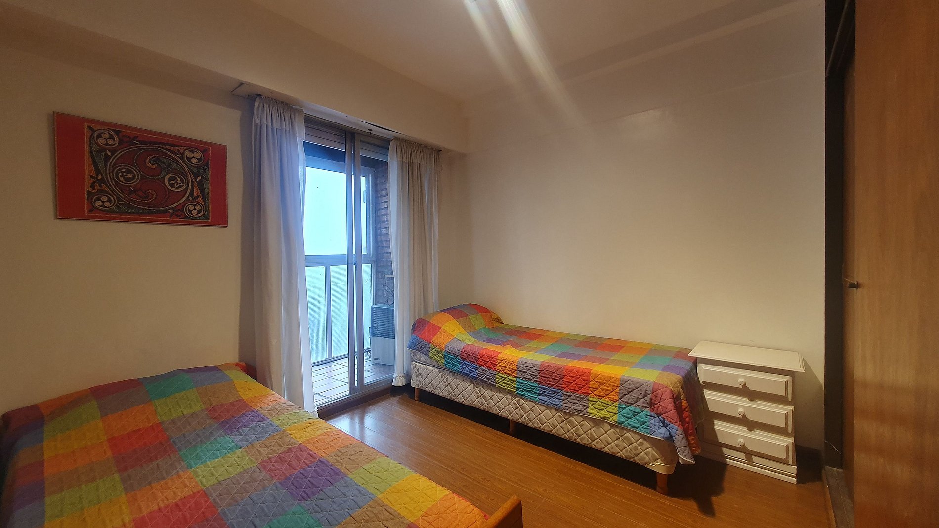 El departamento se encuentra en el Edificio Ipanema. Este edificio cuenta con seguridad nocturna y portero. Hall de entrada, amplio y luminoso living comedor a la calle con balcon saliente. Calefactor de tiro balanceado instalado. Vereda de sol Cómoda cocina con calefón nuevo tiro balanceado Orbis. Dos amplios dormitorios con placar y acceso al balcón cerrado Baño completo con bañera reciclado a nuevo. Cochera fija cubierta en el segundo sub suelo. entra una camioneta 4x4