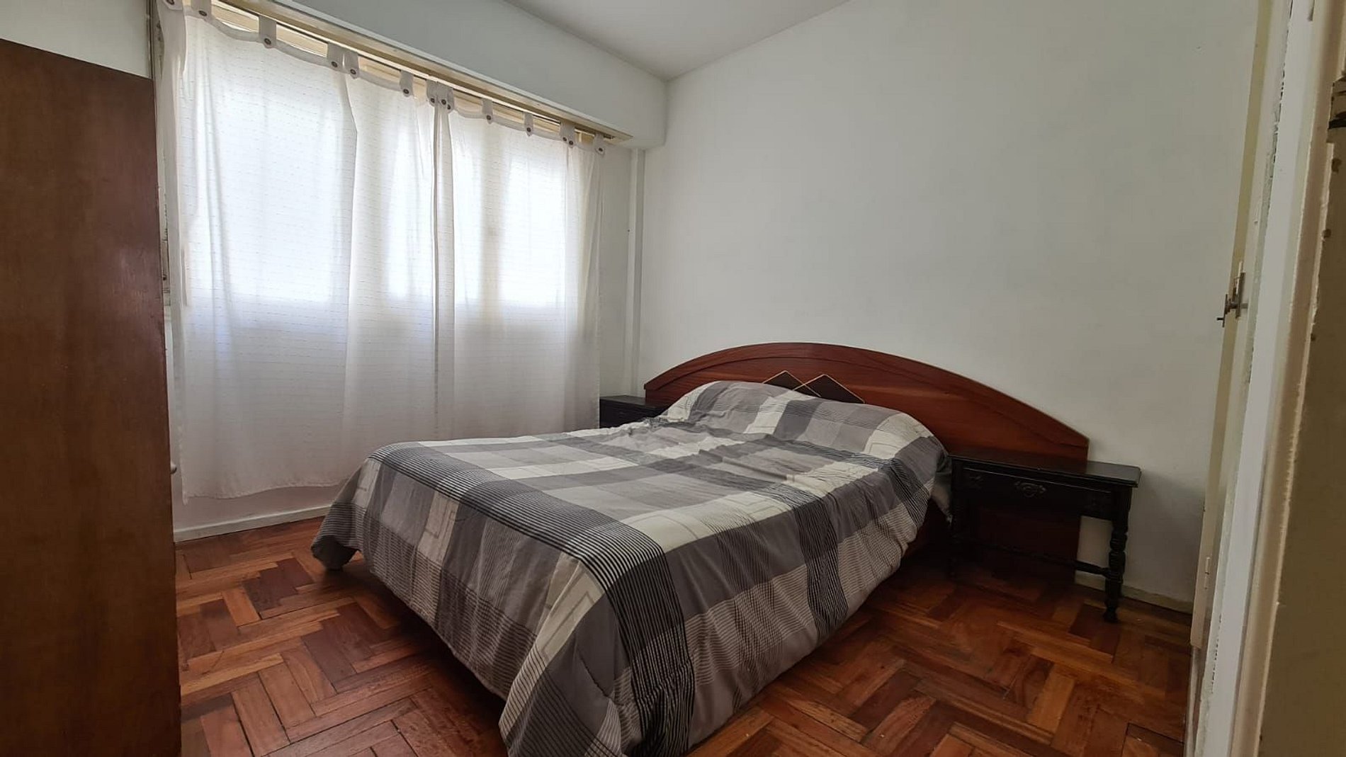 Balcón saliente a la calle. Un dormitorio con cama doble, dependencia de servicio con cama cucheta, un baño completo y un toilette. Preparado para cinco personas. Edificio con agua caliente central. Excelente departamento. Muy luminoso. Muy bien equipado. Muy buena ubicación.
