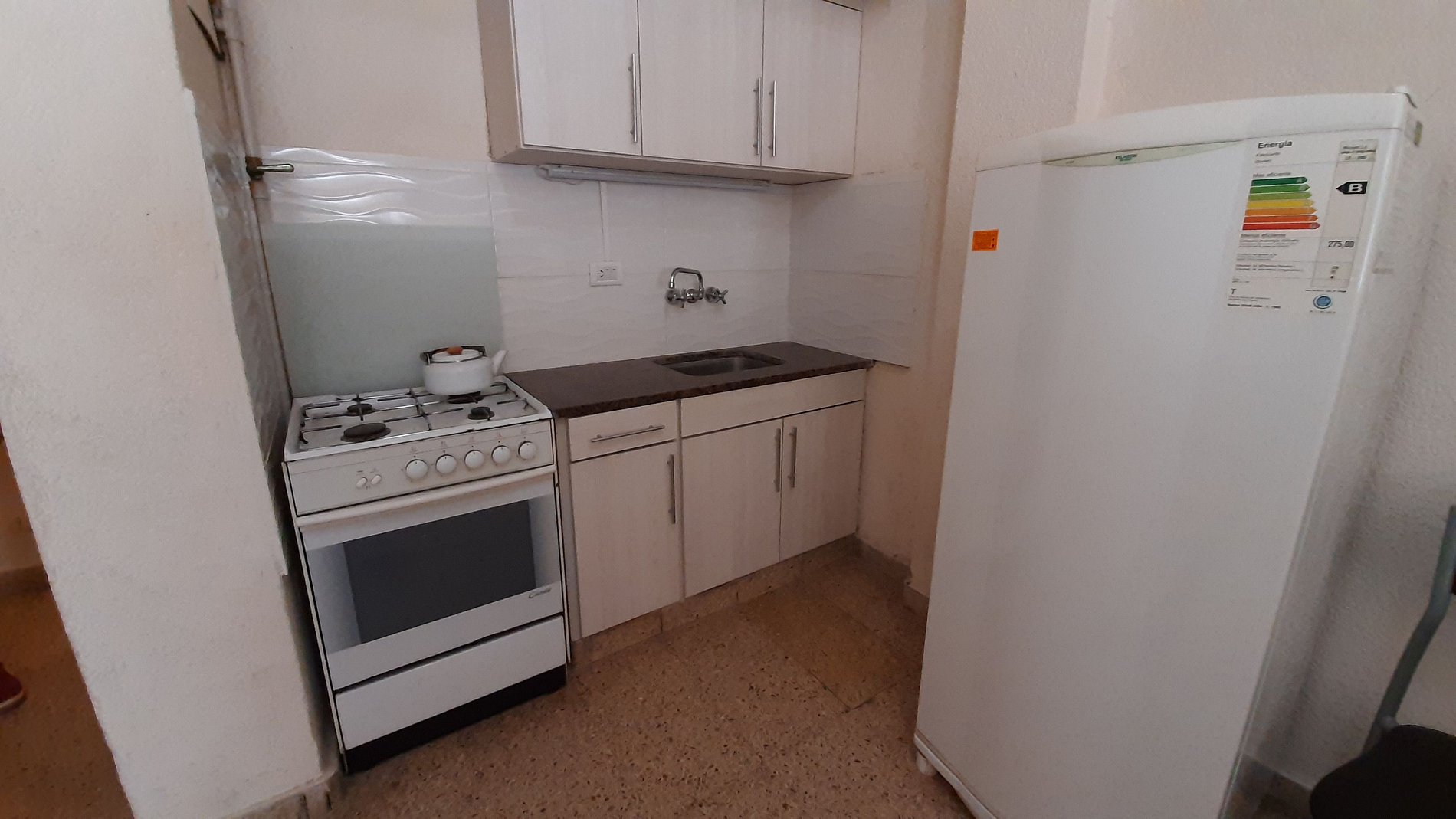Ambiente dividido preparado para 3 personas. Cocina integrada con Cocina horno y Heladera. Baño completo con bañera. Sommier matrimonial. Balcón a la calle.