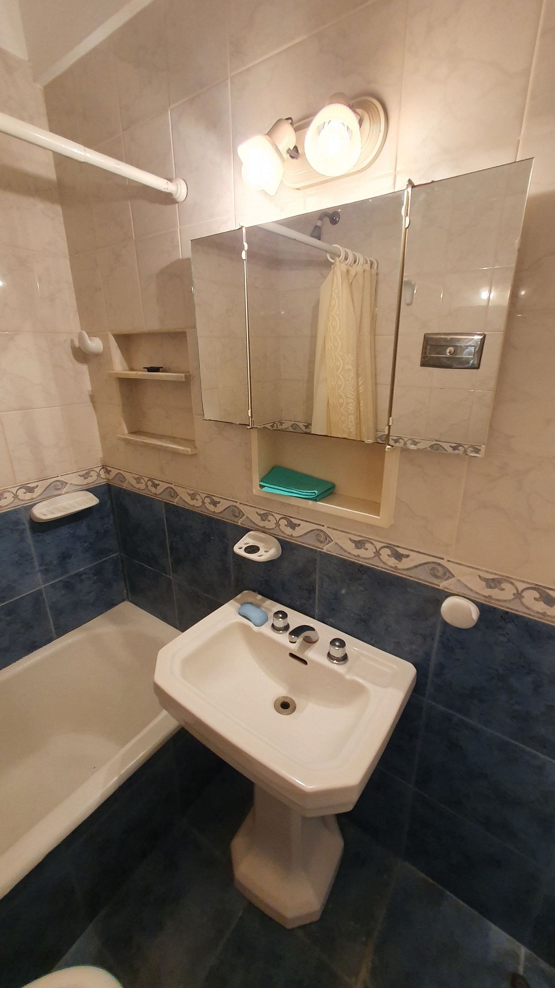 Ambiente dividido preparado para 2 personas. Cocina separada con Cocina horno y Heladera. Baño completo con bañera. Sommier matrimonial. Interno.